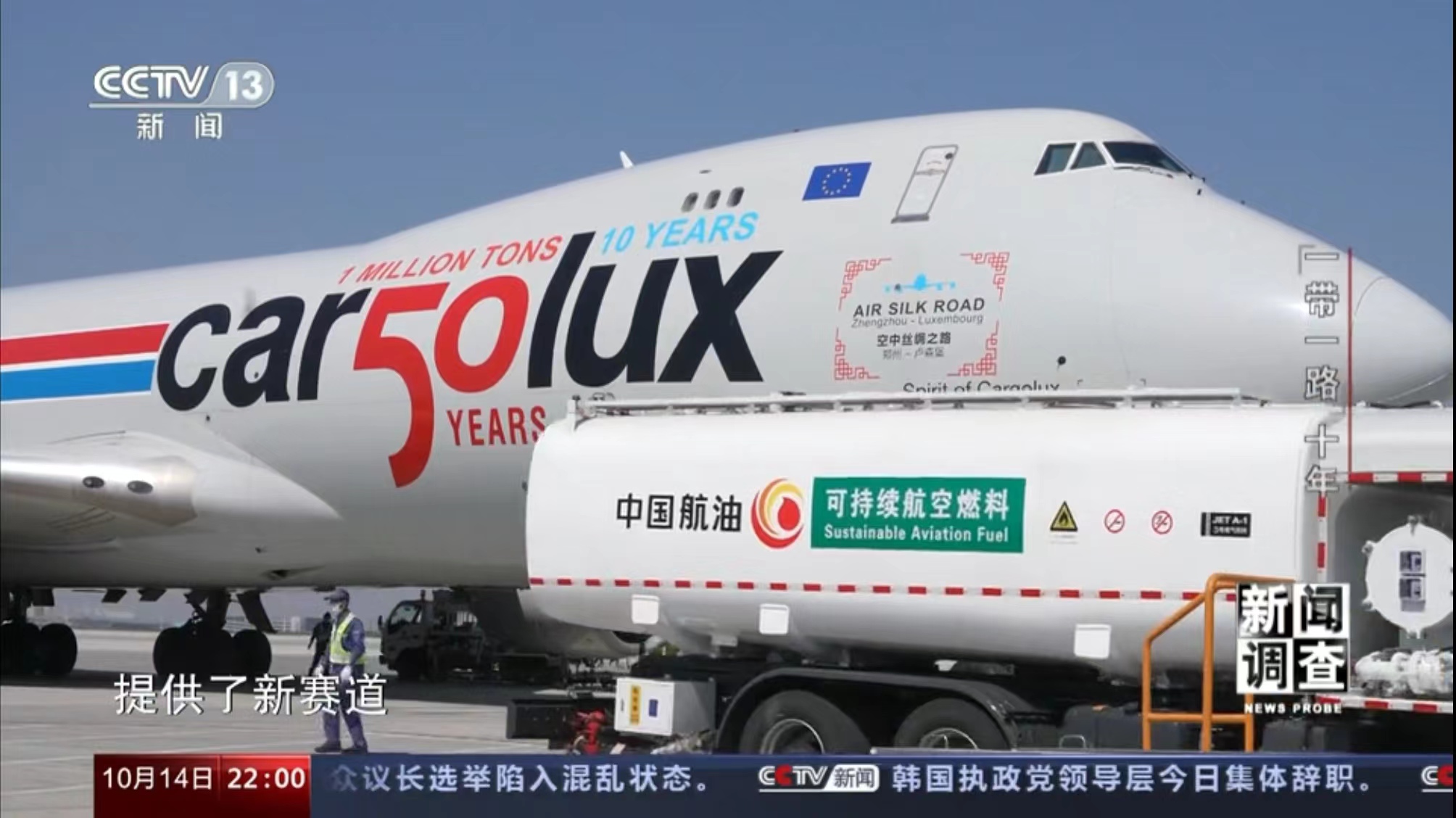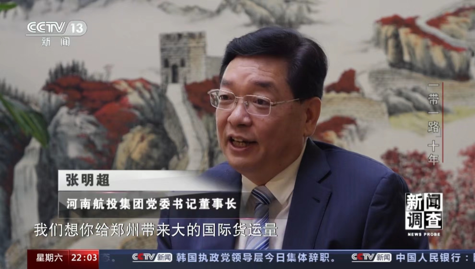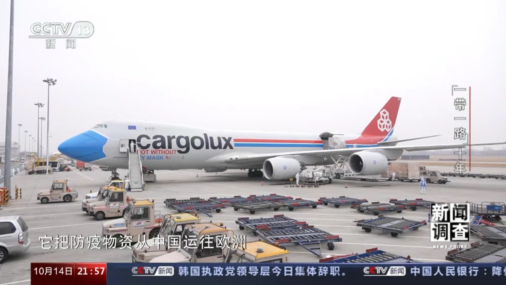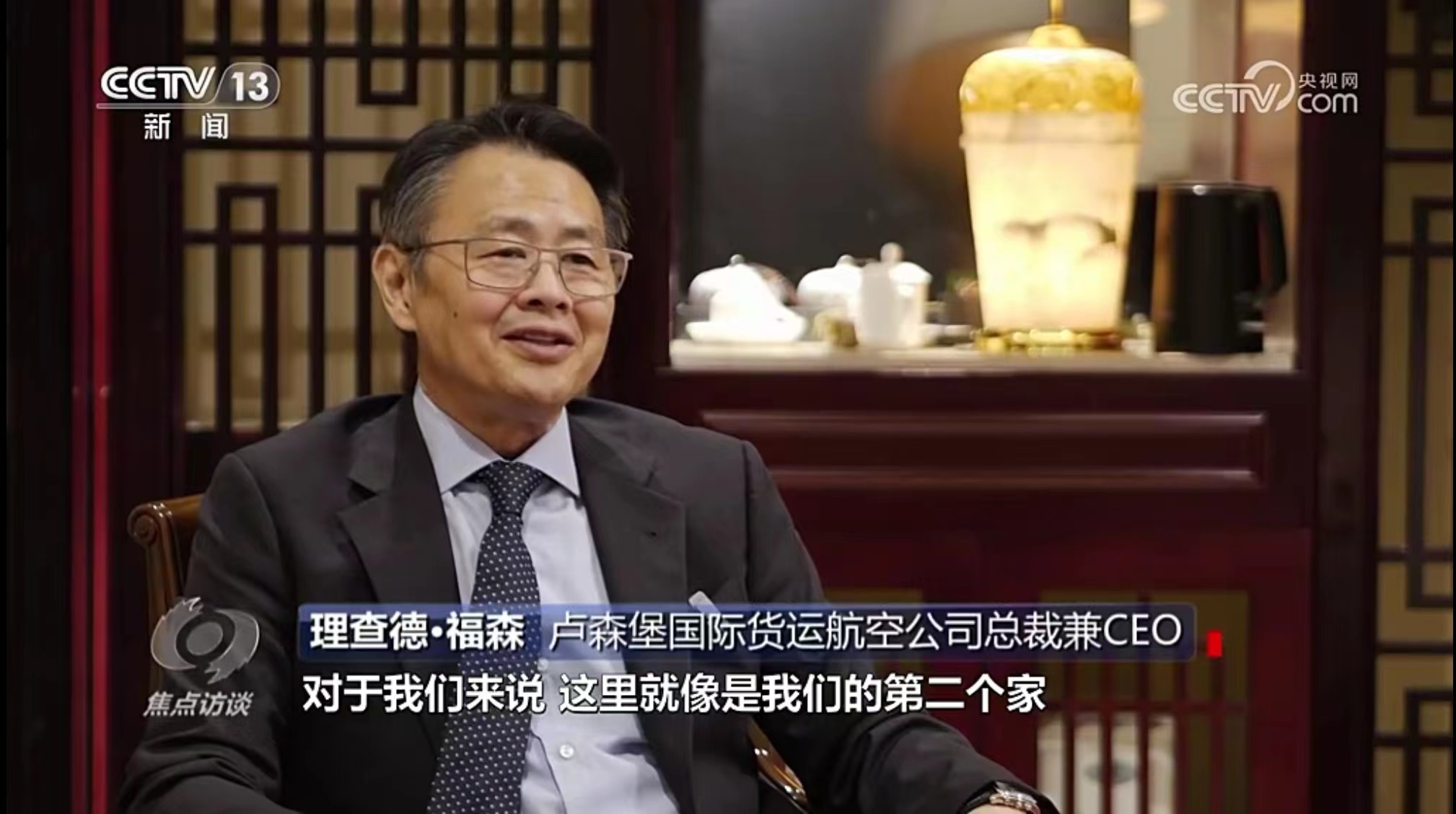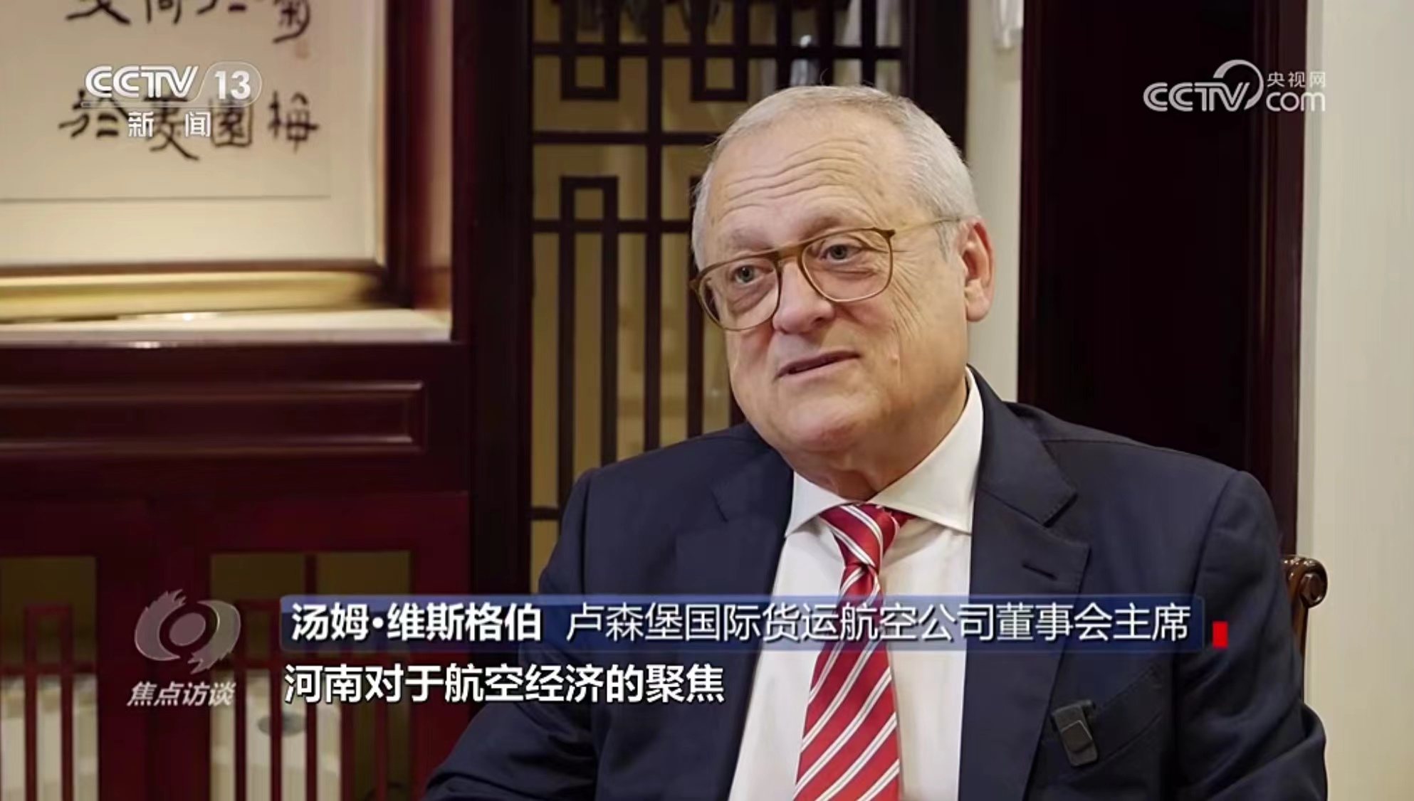 10月11日,央視《焦點訪談》播發(fā)系列報道“絲路同行”第一集——雙向奔赴的繁榮之路。報道中說,“一帶一路”倡議的提出,讓河南明確了突破區(qū)位限制、向藍天要效益的開放思路。通過采訪河南航投集團黨委書記、董事長張明超和盧森堡貨航董事會主席湯姆·維斯格伯、總裁兼CEO理查德·福森,報道回顧了鄭盧“空中絲綢之路”十年探索實踐和豫盧之間的友好情誼。節(jié)目評論道:“(河南航投與盧森堡貨航)之間早已超越了生意伙伴這一簡單的關系,多年的合作讓鄭州與盧森堡兩個航空樞紐之間的互聯(lián)互通真正實現(xiàn)了彼此雙方互利共贏和美美與共。這一切都在詮釋著‘一帶一路’倡議的核心要義?!?