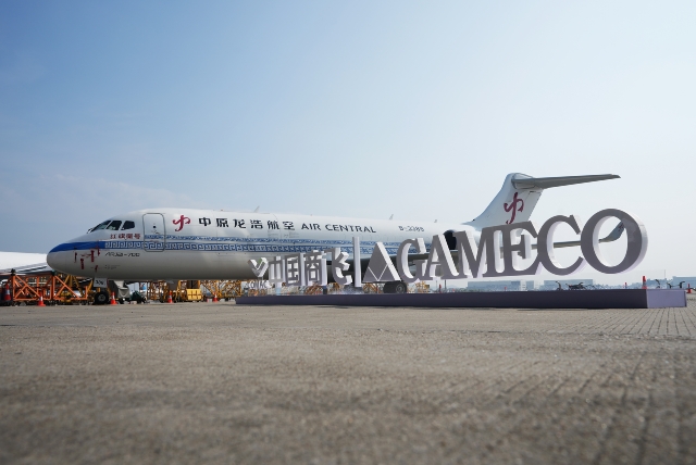 10月30日,中國商飛在廣州向河南航投集團交付ARJ21客改貨飛機。作為啟動用戶,這也是河南航投收到的首架ARJ21客改貨飛機。中國商飛黨委書記、董事長賀東風(fēng)向集團黨委書記、董事長張明超移交交付紀(jì)念鑰匙。中國商飛黨委副書記、董事譚萬庚,中原龍浩航空董事長郭建業(yè)等致辭,中國商飛黨委常委、副總經(jīng)理、總會計師吳永良向河南航投租賃頒發(fā)飛機銷售證,民航中南局副局長陳維向中原龍浩航空頒發(fā)單機適航證、國籍登記證、無線電臺證。中國商飛黨委常委、副總經(jīng)理張玉金主持儀式。