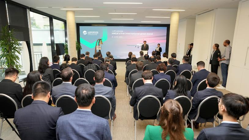 當(dāng)?shù)貢r(shí)間6月21日上午,中豫航空集團(tuán)以河南航投為主體發(fā)行的3年期人民幣境外債券上市儀式在盧森堡證券交易所舉行。這是中國(guó)企業(yè)在歐洲發(fā)行的首只支持可持續(xù)航空燃料(SAF)的綠色債券,也是河南企業(yè)發(fā)行的首只離岸人民幣綠色債券,鄭盧“空中絲路”資金融通實(shí)現(xiàn)新突破。