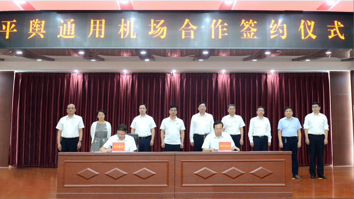 9月15日,河南航投通用航空投資有限公司(以下簡稱航投通航)與平輿縣人民政府簽署通用航空戰(zhàn)略合作協(xié)議。河南航投黨委書記、董事長張明超,駐馬店市政協(xié)副主席張新領(lǐng)、平輿縣委書記張懷德等出席簽約儀式。