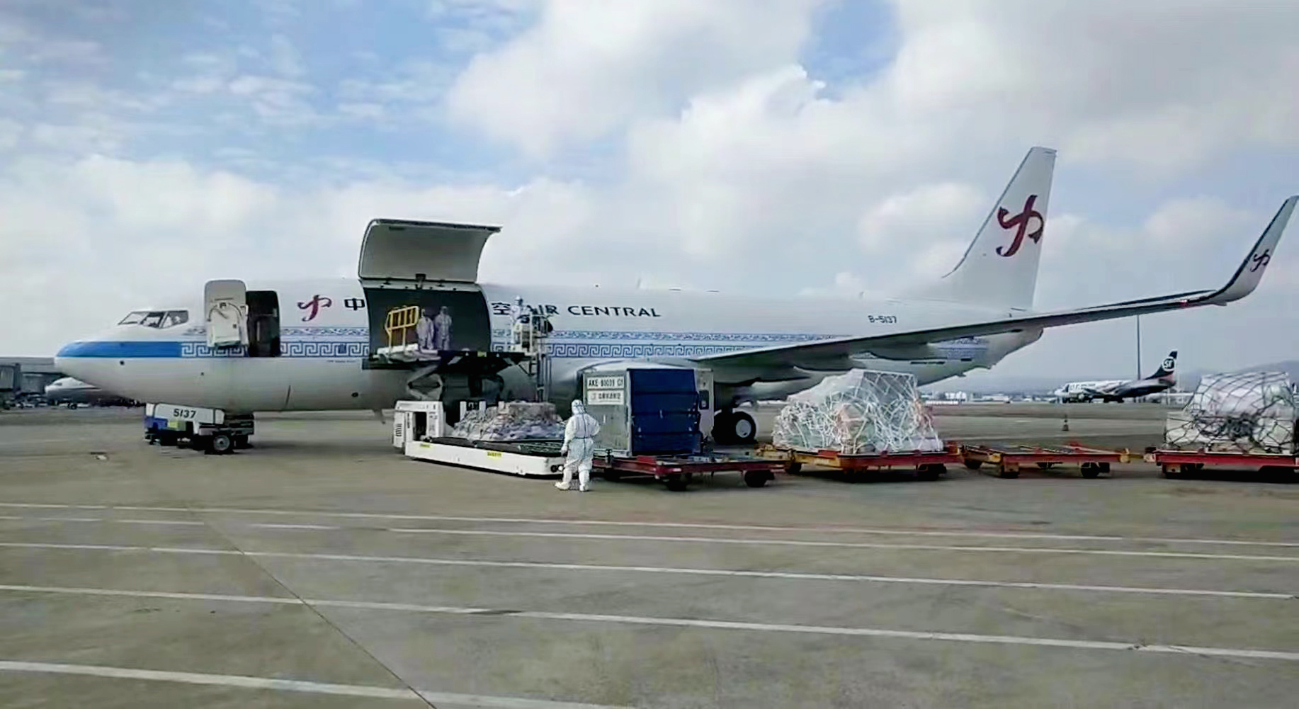 11月11日12時(shí)41分,中原龍浩航空一架滿(mǎn)載紡織輔料、工程配件等貨物的波音737-800全貨機(jī)從南寧吳圩國(guó)際機(jī)場(chǎng)順利起飛,尾翼上“中”字形Logo熠熠生輝,當(dāng)日15時(shí)許抵達(dá)越南胡志明市,標(biāo)志著中原龍浩航空又一條通往RCEP重要城市的國(guó)際貨運(yùn)航線(xiàn)正式開(kāi)通,這也是中原龍浩航空新涂裝貨機(jī)的首次亮相。