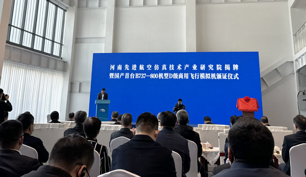 11月26日,河南先進(jìn)航空仿真技術(shù)產(chǎn)業(yè)研究院揭牌暨國產(chǎn)首臺B737-800機(jī)型D級商用飛行模擬機(jī)頒證儀式在河南航投航空培訓(xùn)中心舉行。省委書記樓陽生出席并講話。樓陽生為河南先進(jìn)航空仿真技術(shù)產(chǎn)業(yè)研究院揭牌。中國工程院院士趙沁平受聘擔(dān)任研究院專家技術(shù)委員會主任。中國商用飛機(jī)有限責(zé)任公司黨委書記、董事長賀東風(fēng),省領(lǐng)導(dǎo)孫守剛、陳星、安偉、劉尚進(jìn)出席。
