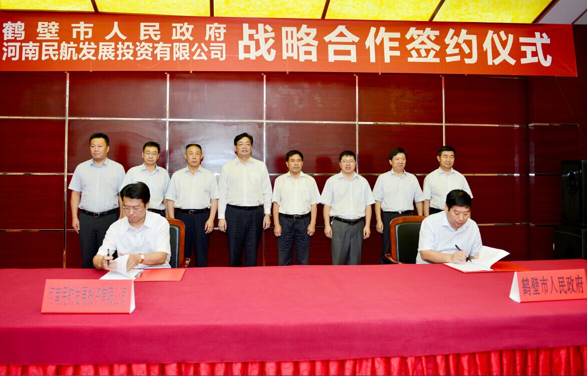 唐遠(yuǎn)游在致辭中介紹了鶴壁市基本情況和近年來的發(fā)展。他表示,鶴壁市發(fā)展環(huán)境優(yōu)良,地處中原經(jīng)濟(jì)區(qū)連接環(huán)渤海經(jīng)濟(jì)圈的前沿,呈現(xiàn)鐵路和高速公路雙十字的交通格局,區(qū)位交通優(yōu)勢突出。鶴壁海關(guān)、出入境檢驗(yàn)檢疫局等口岸建成運(yùn)行,正在申建綜合保稅區(qū),一些知名的外向型企業(yè)紛紛入駐,對(duì)外貿(mào)易蓬勃發(fā)展。今天簽署戰(zhàn)略合作協(xié)議,對(duì)雙方優(yōu)勢互補(bǔ),實(shí)現(xiàn)共贏意義重大,鶴壁市委市政府將努力提供一流服務(wù),創(chuàng)造一流環(huán)境,大力支持河南航投在鶴壁的發(fā)展。
