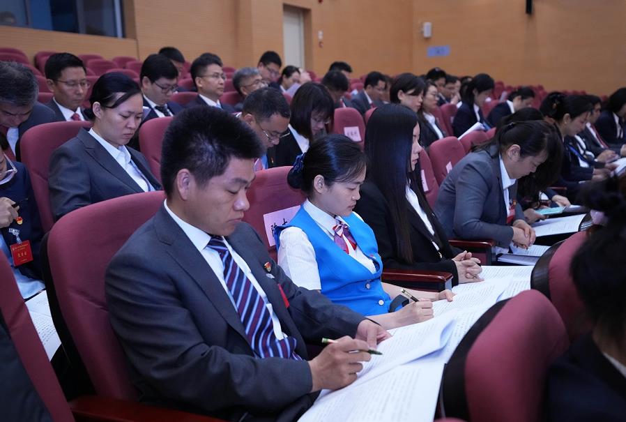 集團(tuán)黨委書記、董事長(zhǎng)張明超代表集團(tuán)黨委向大會(huì)作報(bào)告,與會(huì)代表在現(xiàn)場(chǎng)認(rèn)真聆聽(tīng)。