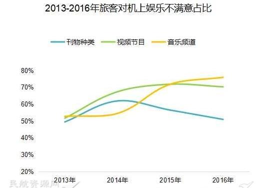 以上圖為例,音頻、視頻、旅客的滿意度一直在下降,不滿意度一直在上升?!熬退銠C(jī)上娛樂(lè)項(xiàng)目更新得再快,做得再好,不可能滿足每一個(gè)旅客的個(gè)性化需求。但是只要打通了一個(gè)環(huán)節(jié),把互聯(lián)網(wǎng)接上了,聊微信也好,聽(tīng)QQ音樂(lè)也好,還是聽(tīng)其他的音樂(lè)也好,那都是旅客自己的事情,旅客滿意度會(huì)得到最大程度的提升?!?